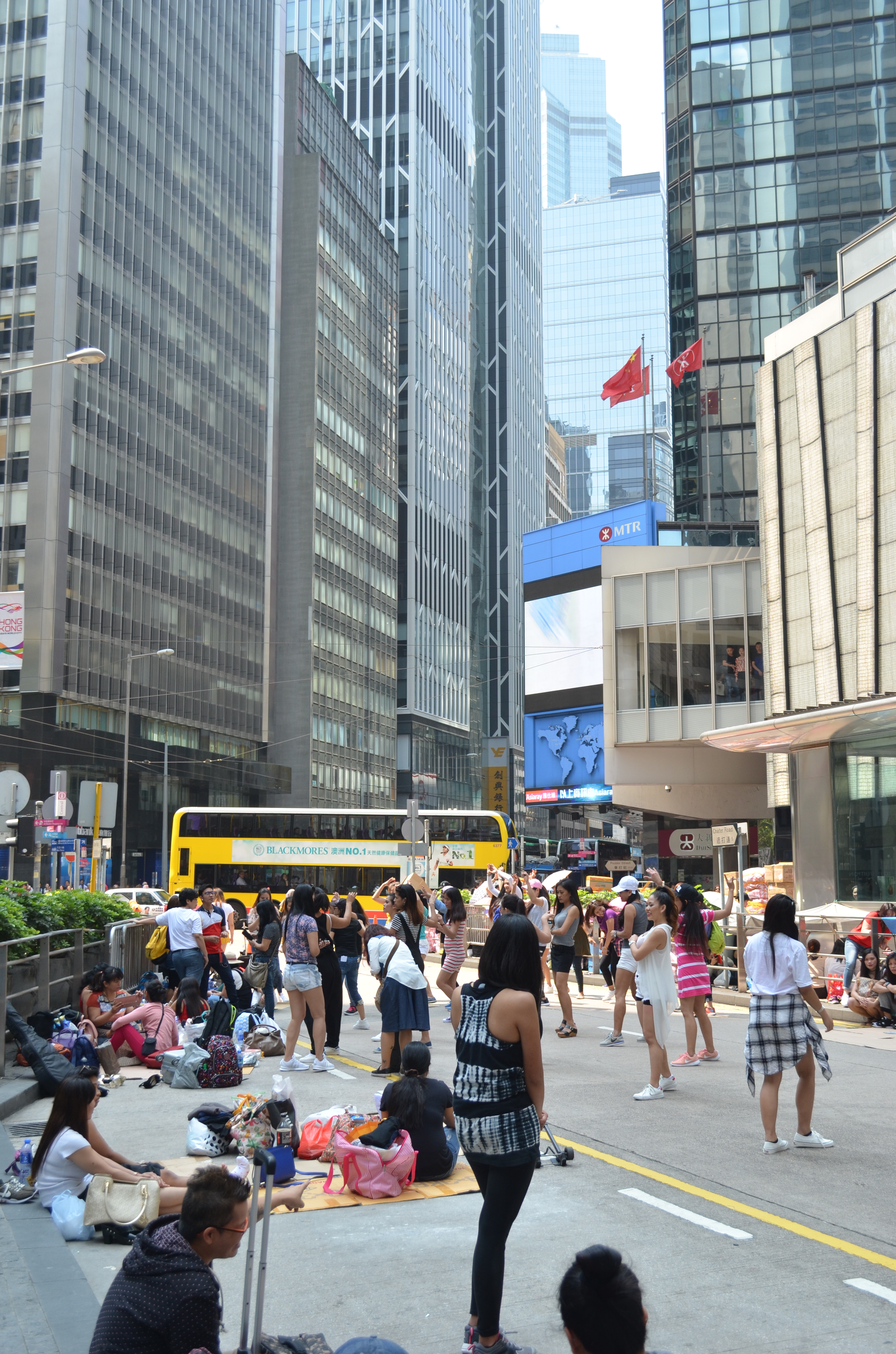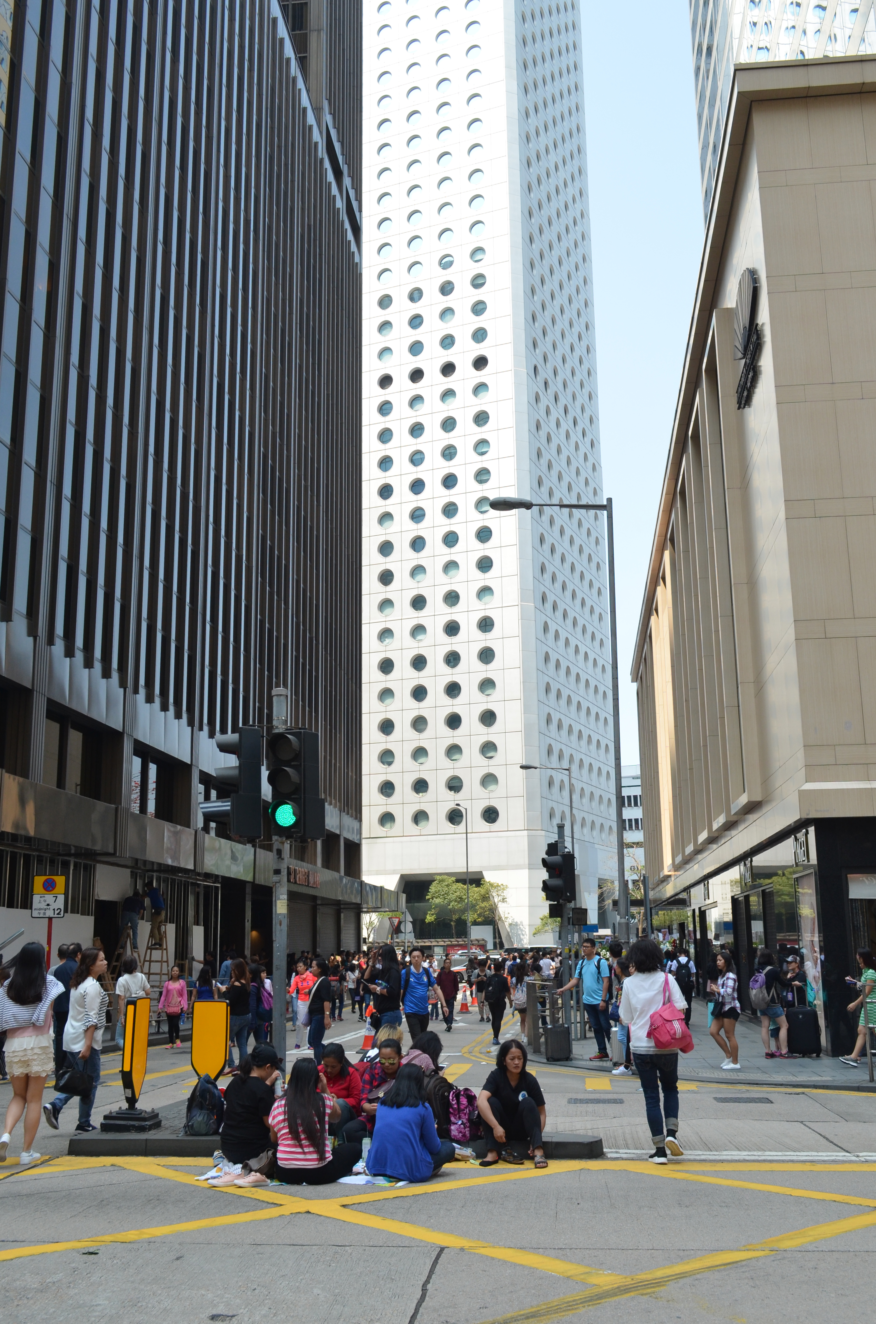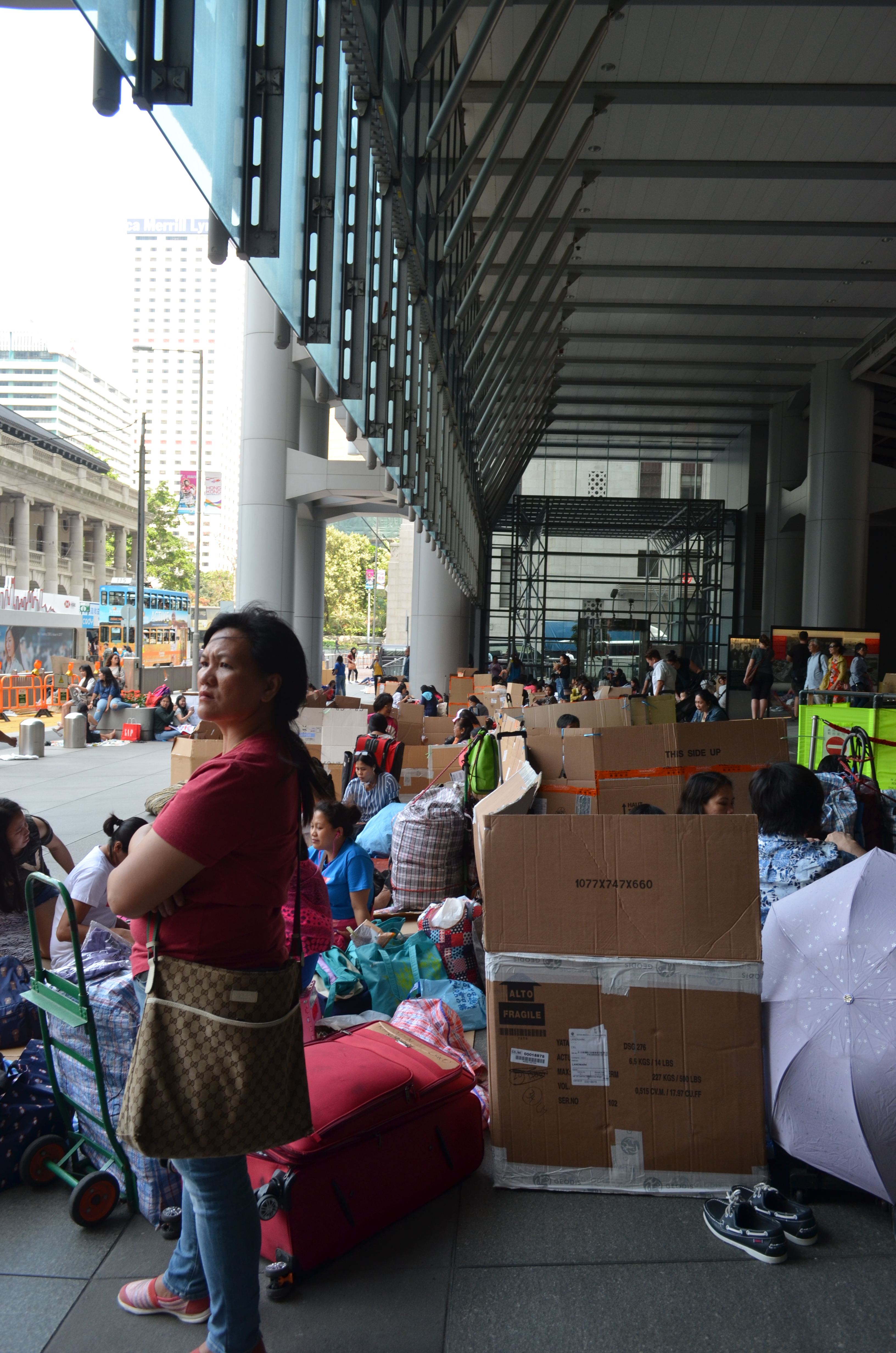 On their one day off per week, live-in migrant workers pour out into the streets of Hong-Kong, bringing with them cardboard boxes and trolley-loads of food, clothing and appliances. The cardboard boxes are turned into makeshift floors and walls placed on pavements, in public squares and at the foot of Hong Kong’s enormous towers. Standing amongst the sea of cardboard, colourful clothing and chaotic conversations enamoured us to these women’s outwardly challenge to Hong Kong’s elite.
