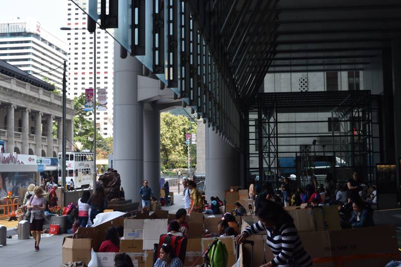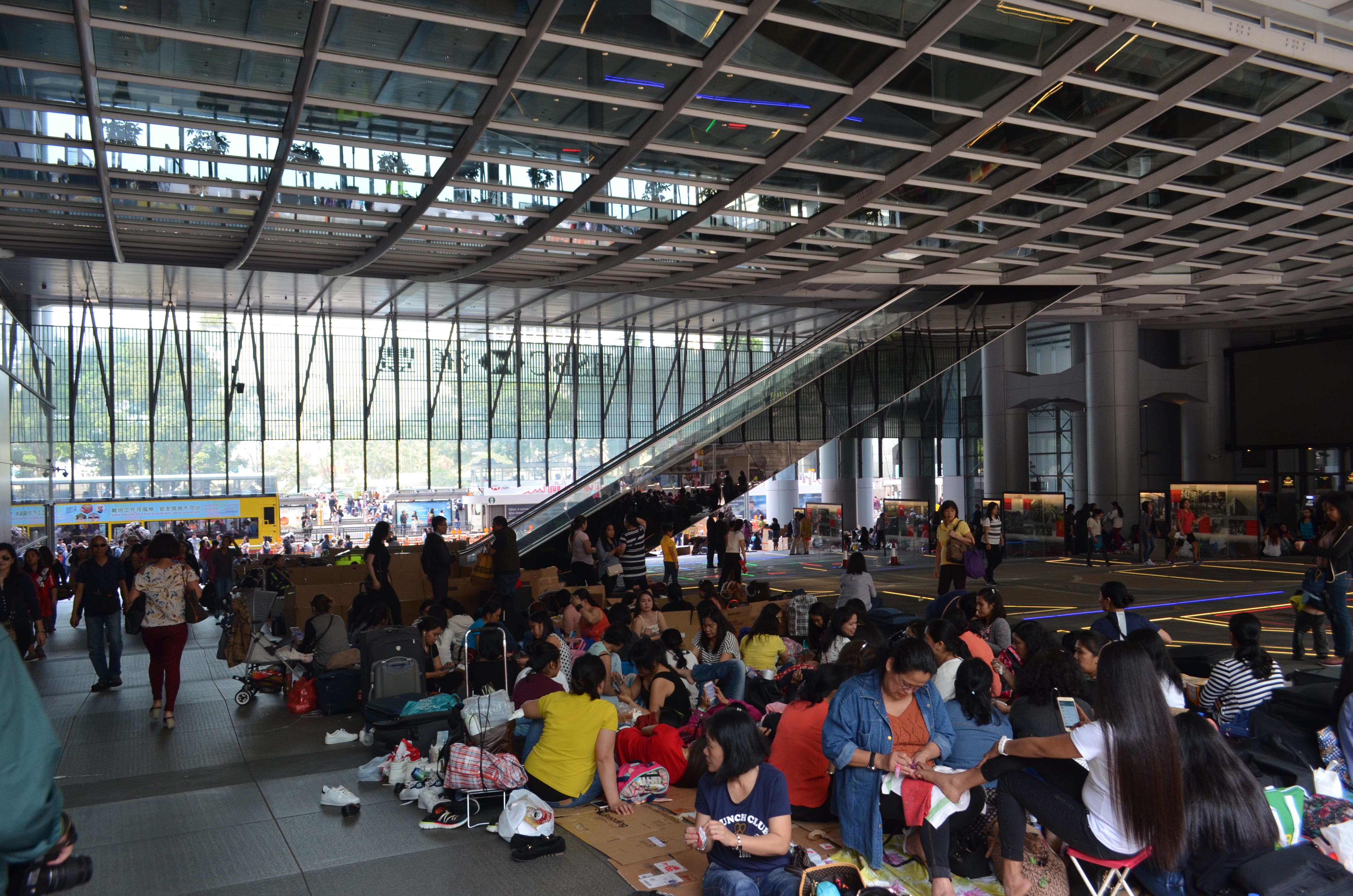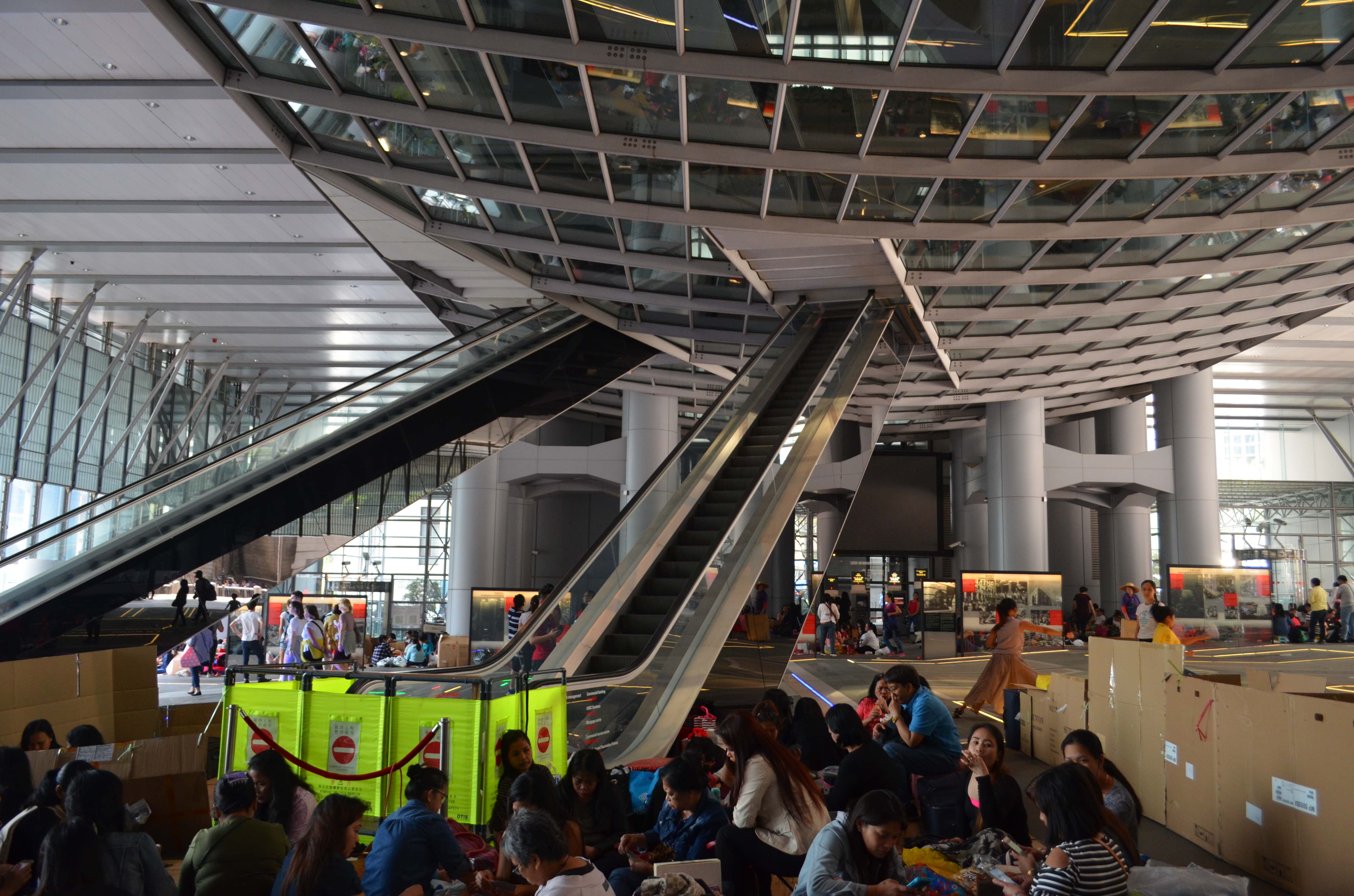 On their one day off per week, live-in migrant workers pour out into the streets of Hong-Kong, bringing with them cardboard boxes and trolley-loads of food, clothing and appliances. The cardboard boxes are turned into makeshift floors and walls placed on pavements, in public squares and at the foot of Hong Kong’s enormous towers. Standing amongst the sea of cardboard, colourful clothing and chaotic conversations enamoured us to these women’s outwardly challenge to Hong Kong’s elite.