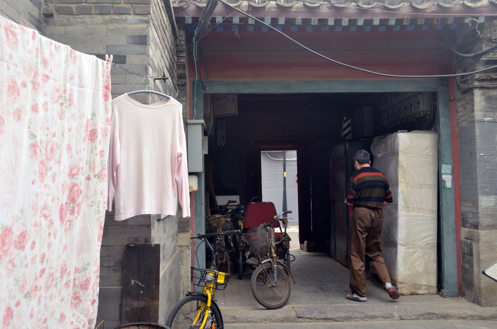 Piercing portals here do not demarcate ‘inside’ from ‘outside’ as normal thresholds do. Rather they are bridges, channelling the flow of people away from the alley, through the winding and seemingly unending layers of rooms with no perceivable outline of a ‘dwelling’. On first encounter the experience is disorientating; there is no front or back, no entrance or exit, no clear demarcation of ownership. The multiple folds of the hutong frame uncensored encounters of the inhabitants; a person rests in an open living room, unknowingly watched by two strangers, a man at work over a makeshift work-bench, a woman and child carrying the laundry amongst a tangle of clothes lines. Here, a kitchen remains indistinguishable from a bedroom and from a living space. The path we walk on is equally the inhabitants’ yards or the space to hang their washing.