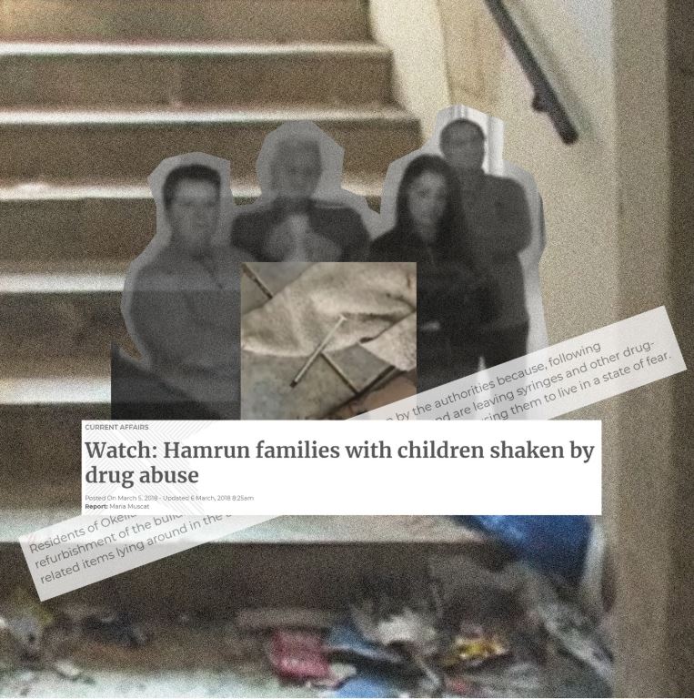 Ochella house has evolved over time. In an attempt to get rid of its stigma, the place was superficially renovated – fresh coat of paint, intercoms slapped on only to be quickly broken or stolen. Basically, a wasted investment to which residents retorted with a “why not just give us a key to close off the common access?”. Rampant drug usage, dirty passages, littered corridors, but still, signs of life sprout out like greenery through the cracks; a facade organically decorated over time appropriated with colourful umbrellas and signs on the balconies.