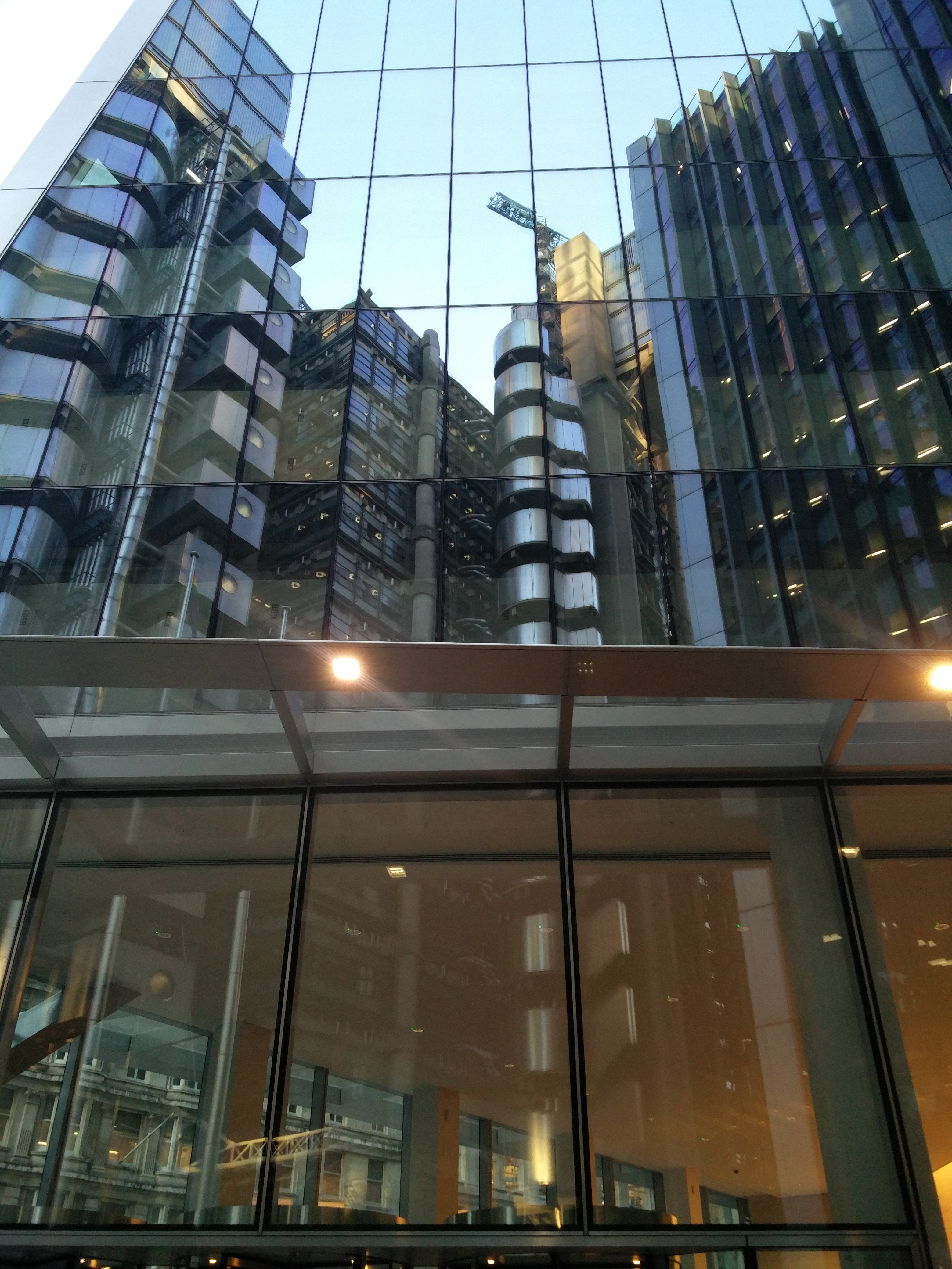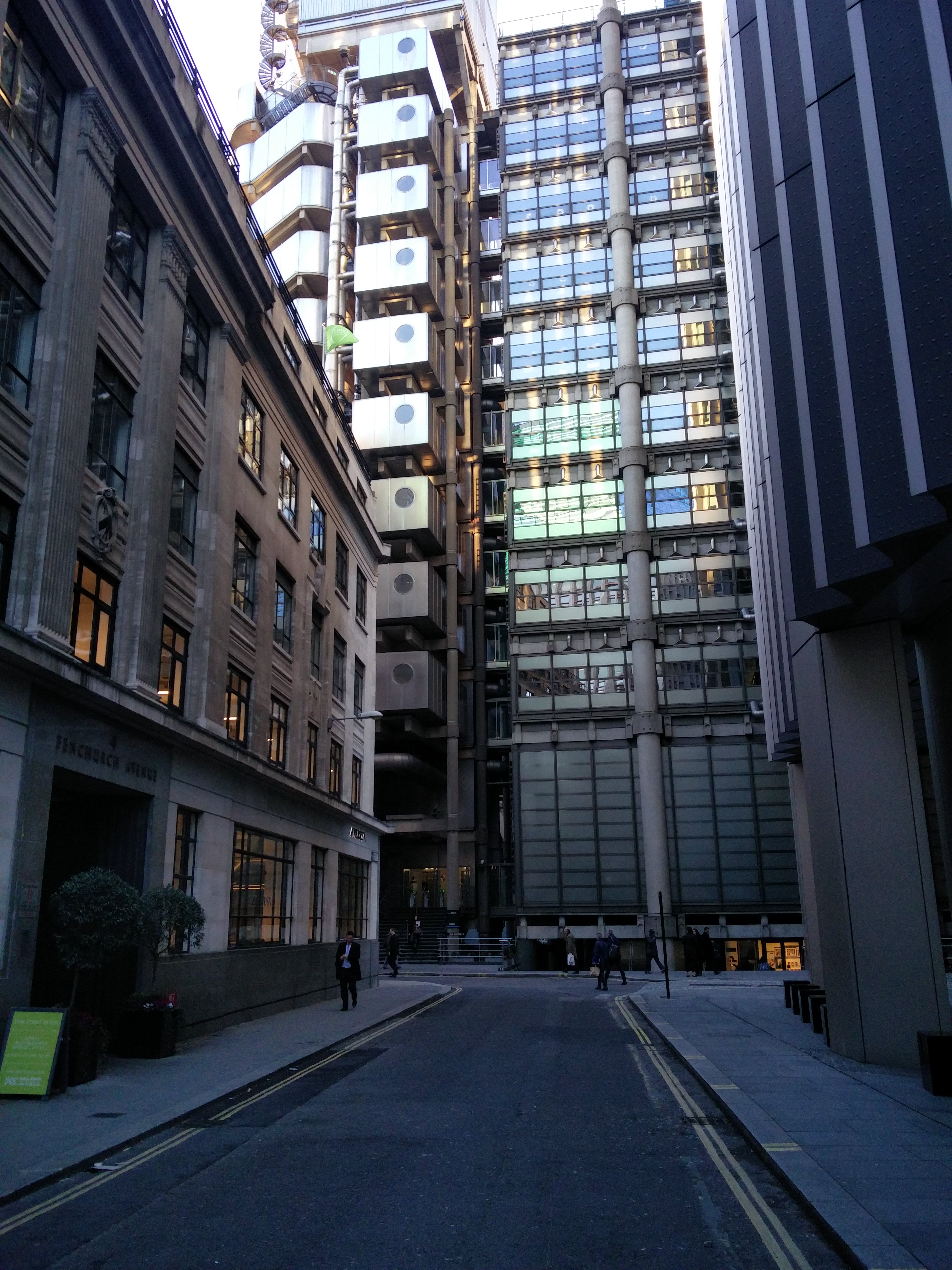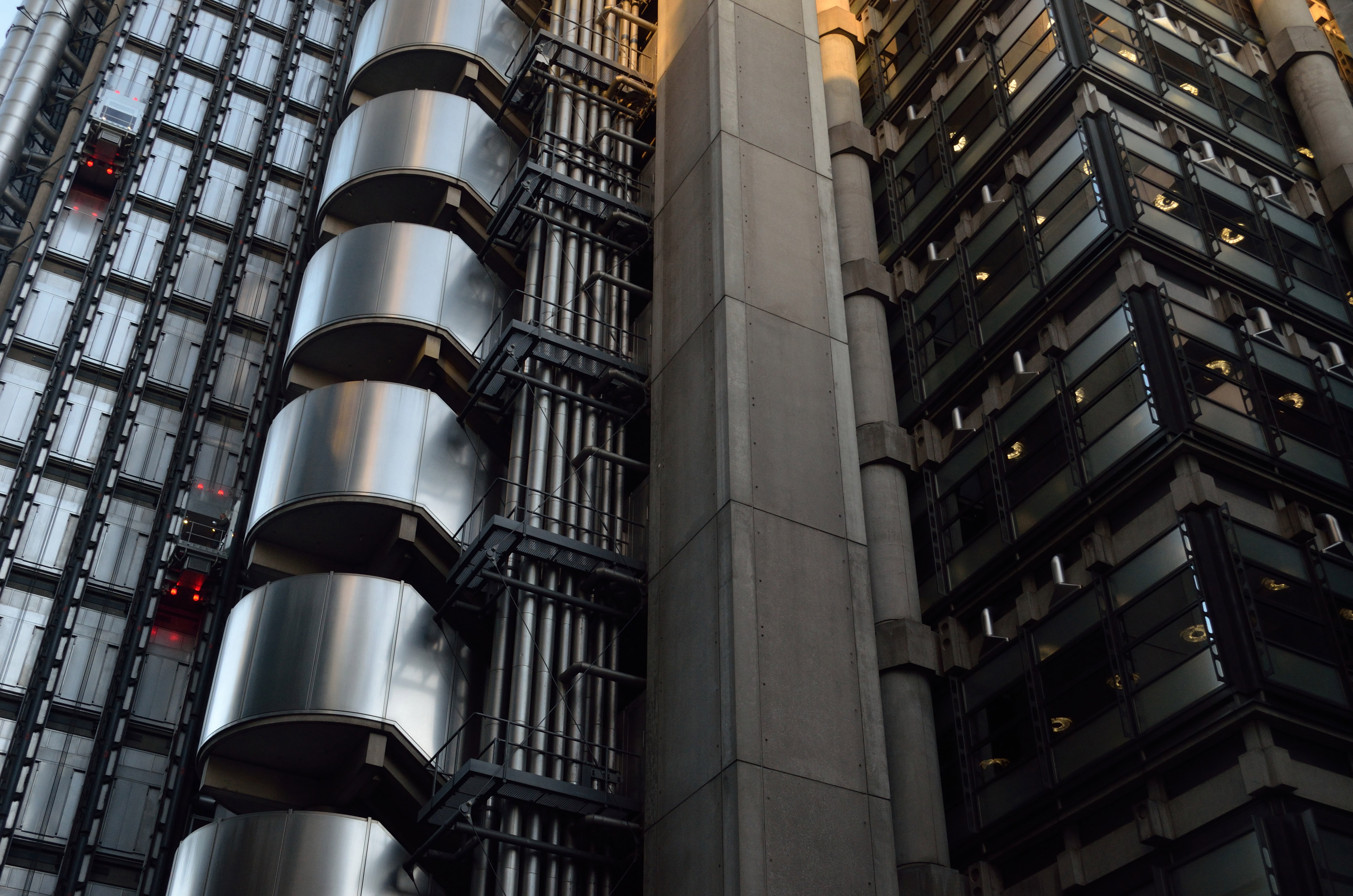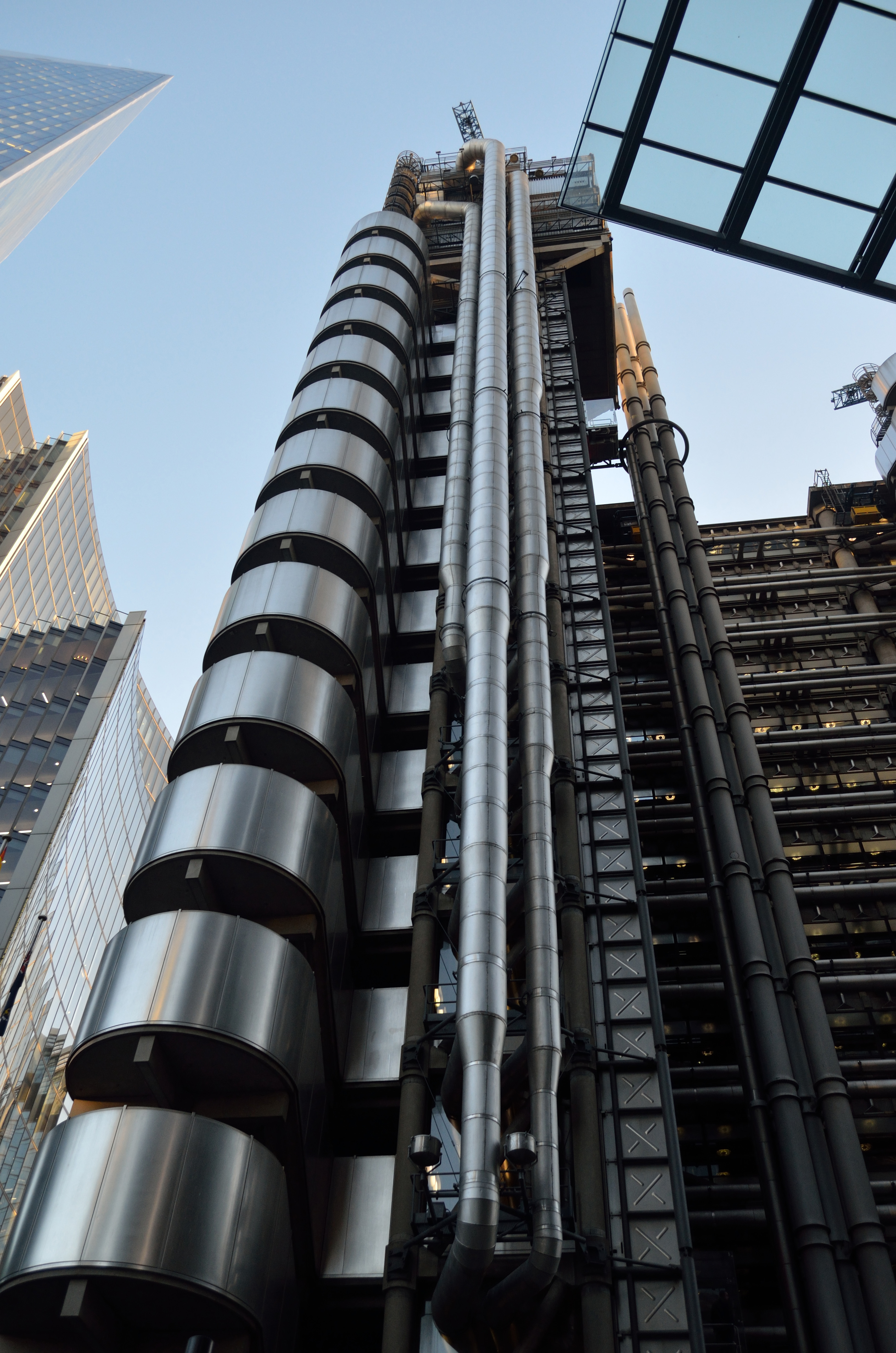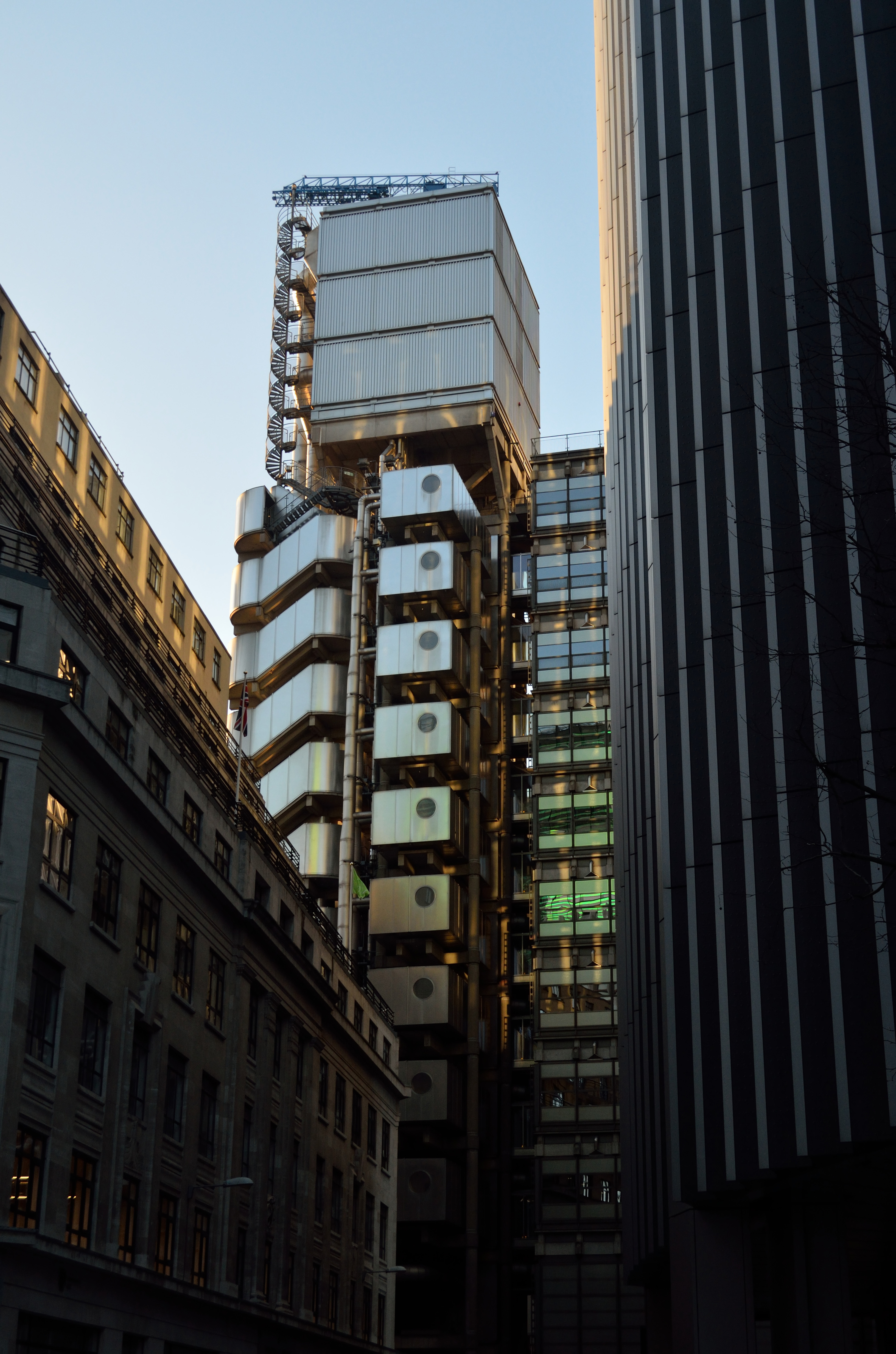 The Lloyd’s Building looks like it was imported from Japan – perhaps a long lost cousin of the Nakagin Tower. Yet, standing here amongst its taller, glass covered neighbours at central London, it smashes the predominant model of preserved Georgian-houses-turned-department-stores back-dropped by stunning glass towers, and adds a new layer in between the old and new: dirty grunge. This vulgar aesthetic is inevitable: without the lifts, stair cores and mechanical components of this building designed to be at its perimeter, dramatic aesthetic would not have been possible.