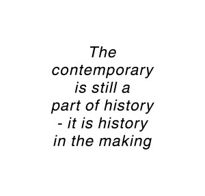 However we choose to judge it, the contemporary is still a part of history: it is history in the making. Turning away from it and declaring oneself against the present is a declaration of indifference; this new history must be understood on its own terms. It must be acknowledged, studied and understood without prejudice. There must be an attempt to take-stock of the contemporary.